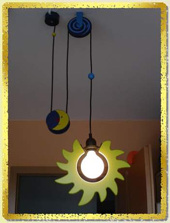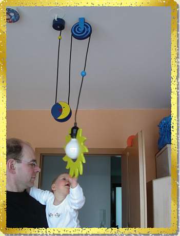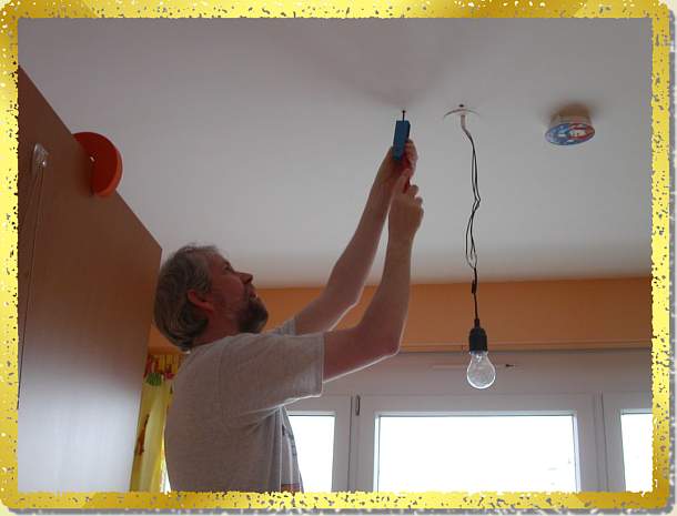 Schaut her, mein Papa montiert eine ganz tolle Lampe!